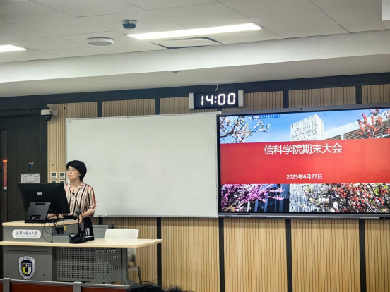 6月27日下午,信科学院2025年春季学期期末大会在国际大厦409教室召开,党总支副书记刘玉华和辅导员赵韵怡出席,全体学生参加。