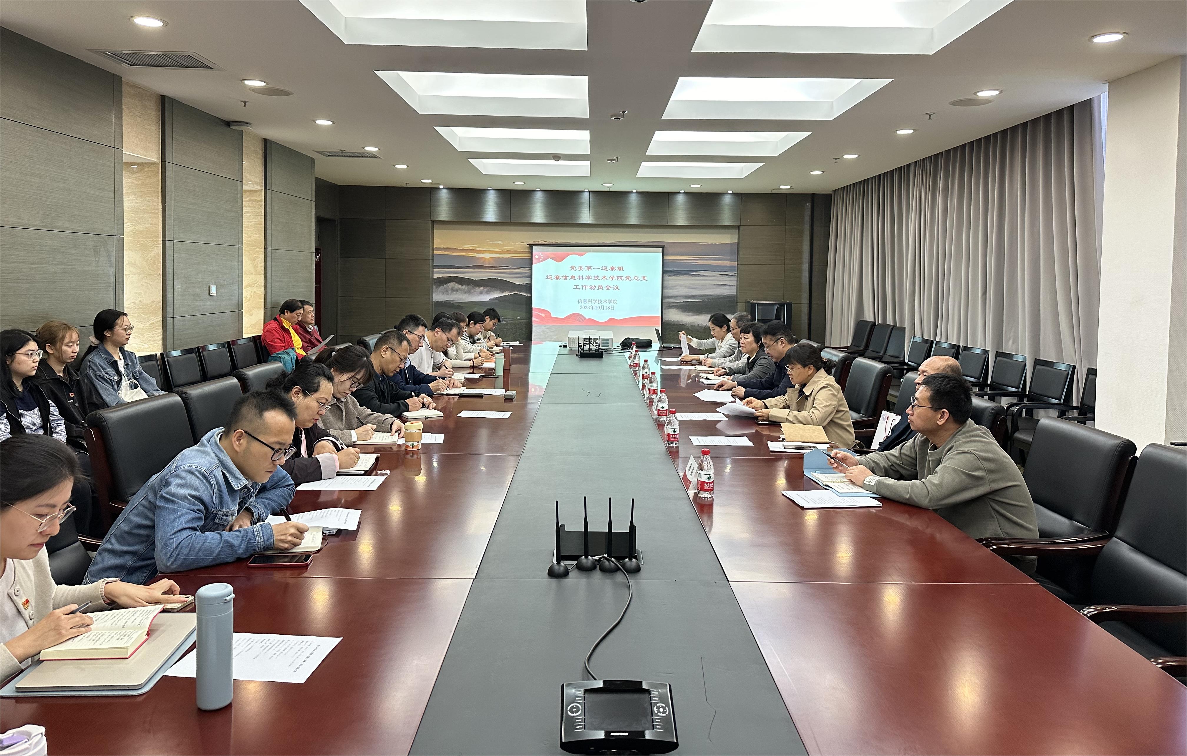 2023年10月18日上午,根据学校党委关于巡察工作统一部署,党委第一巡察组巡察金年会jinnianhuicom党总支工作动员会在金年会jinnianhuicom召开。学校党委副书记、纪委书记胡志钢,第一巡察组组长张荟霖、副组长潘华珍,第一巡察组成员高雁鸣、潘亮、相忠群,党委巡察办副主任杨光,信科学院领导班子成员、全体教师和学生党员代表参加会议。会议由信科学院院长蔡连侨主持。