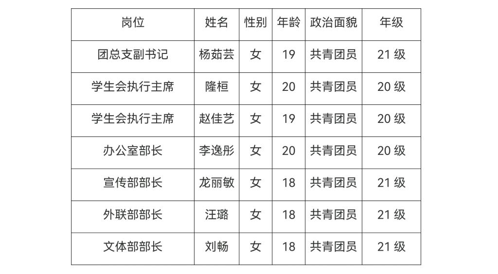 依据《金年会jinnianhuicom团总支学生会主席团部长团遴选通知》安排,经过自主报名、资格审查、公开遴选、答辩等环节,金年会jinnianhuicom(以下简称“信科学院”)党政负责人、教师代表、第三届主席团和部长团以及学生代表共同参与、公开投票,按投票结果产生信科学院团总支学生会第四届主席团和部长团,现将换届结果公示如下: