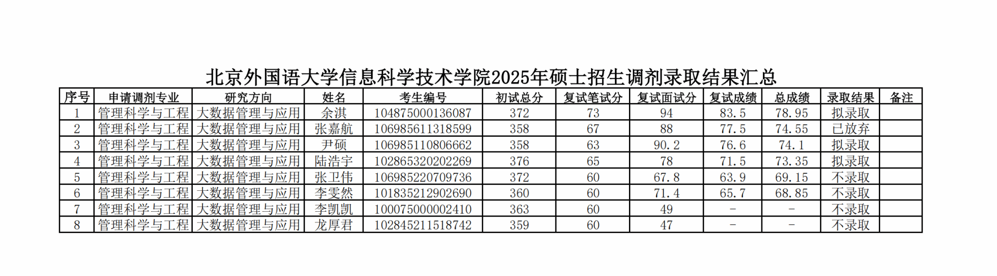 金年会jinnianhuicom2025年硕士招生调剂复试拟录取结果